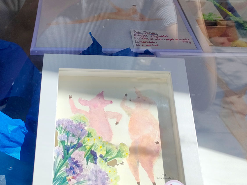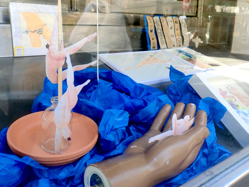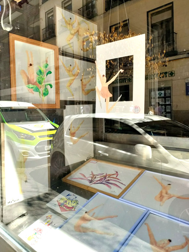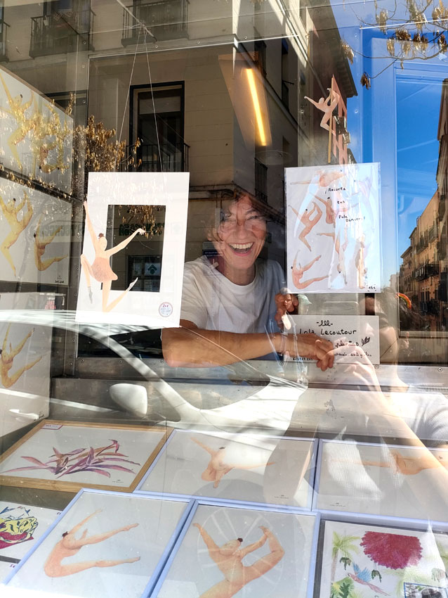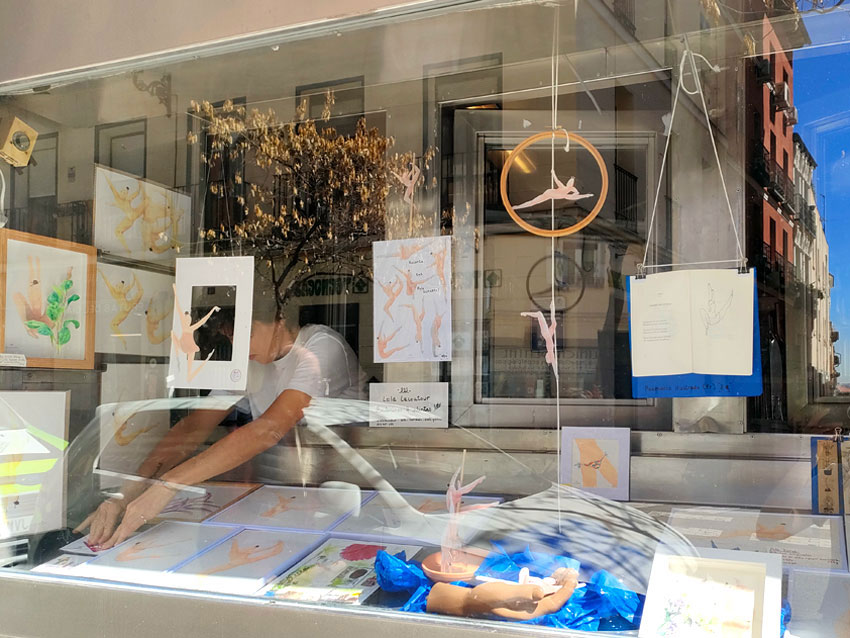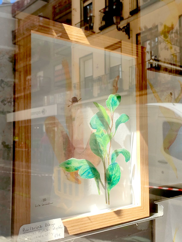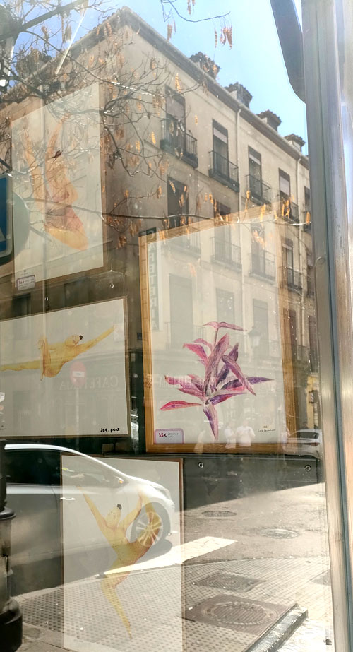 L’un des bar mythique du centre de Madrid, le Benteveo, m’a confié la décoration de sa vitrine pour un mois. J’y ai monté l’exposition « danseuses et plantes » ; un vrai cirque !