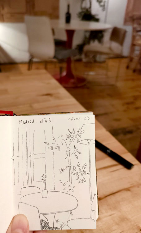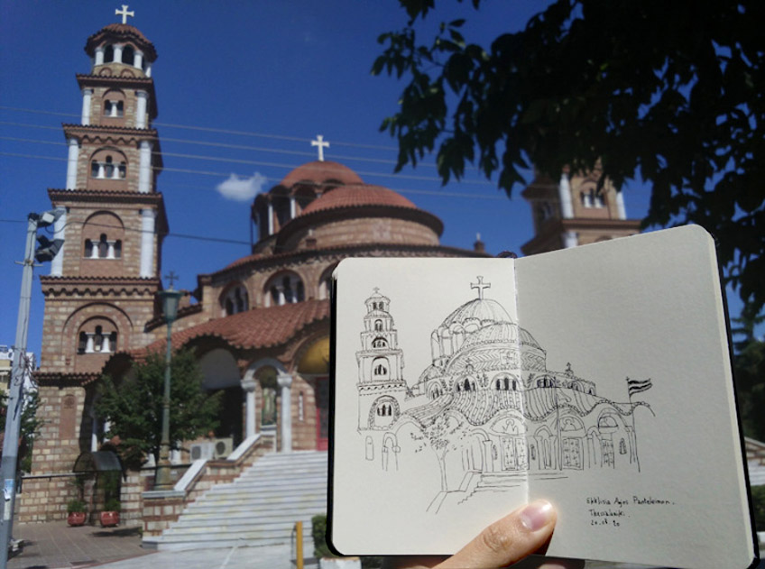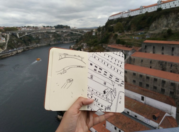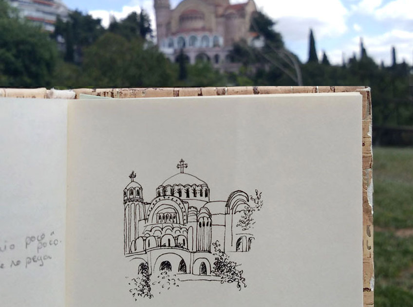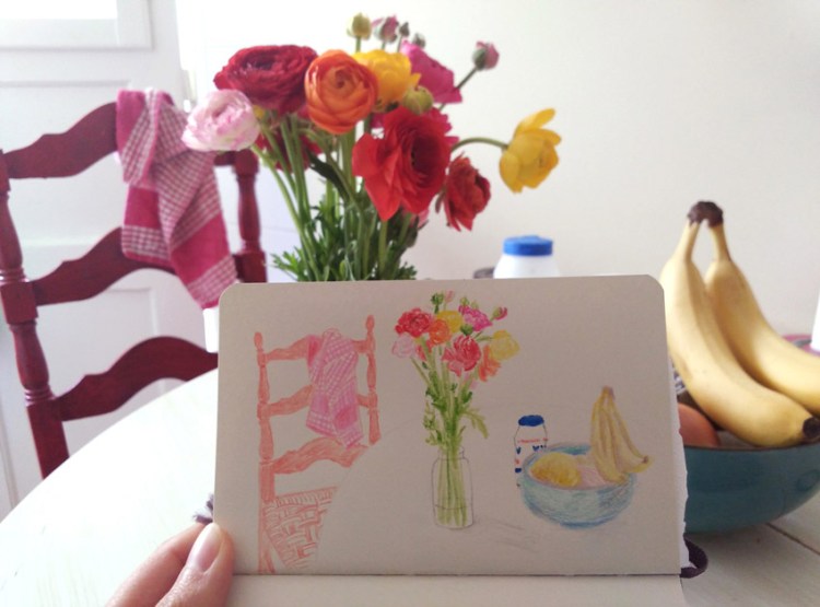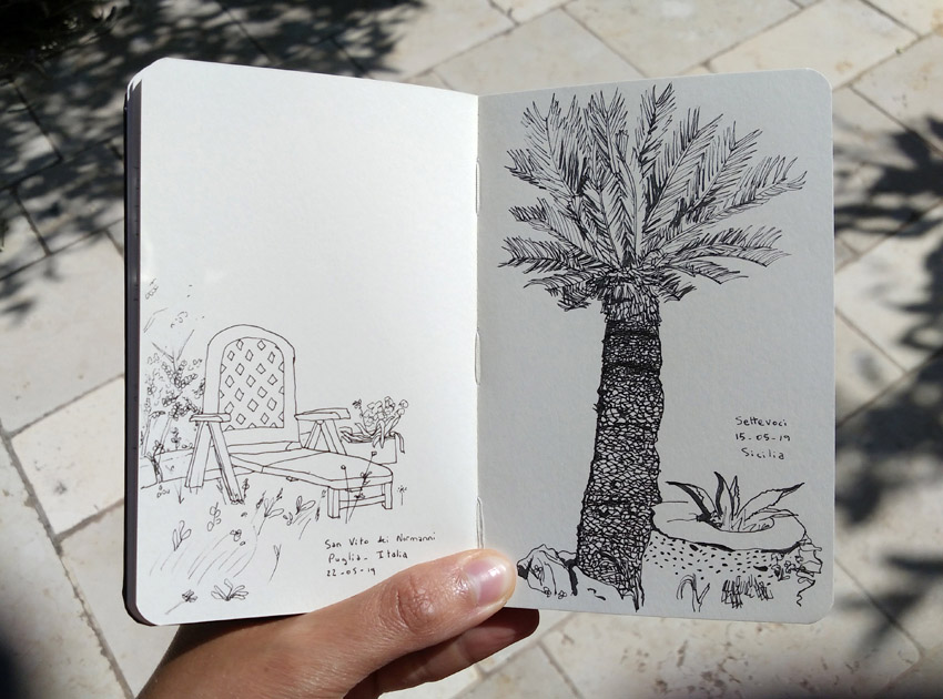 En voyage ou dans ma ville du moment, le carnet toujours dans le sac ! Un stylo feutre très fin et un carnet de plus en plus petit (méthode anti procrastination).