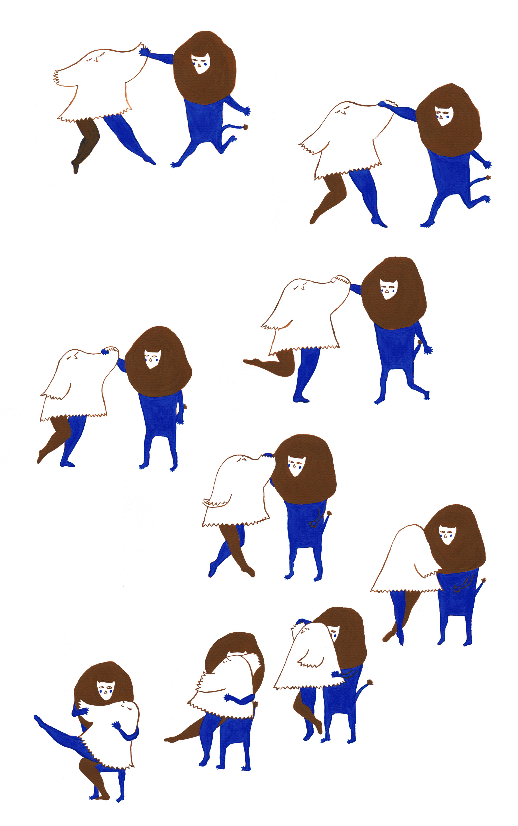 Neuf peintures sur papier aquarelle format A4. Gouache pour le marron, peinture satiné pour le bleu. Cette animation fût projetée lors d’un festival organisé dans la ville d’Hagen en Allemagne en 2018. Thème de la paix, du vivre ensemble, d’embrasser les différences.