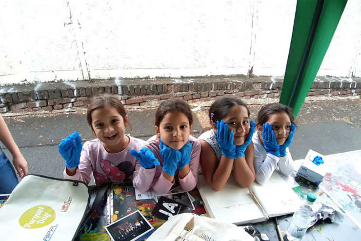 Wehringhausen est un quartier populaire multiculturel de la ville de Hagen (Allemagne). Beaucoup d’enfants de ce quartier ne partent pas en vacances en été. Le projet de ce mur collectif No Borders s’est déroulé sur 15 jours au mois d’août 2019 afin de se faire rencontrer les habitants du quartier, adultes comme enfants afin de les unir dans un projet artistique commun.