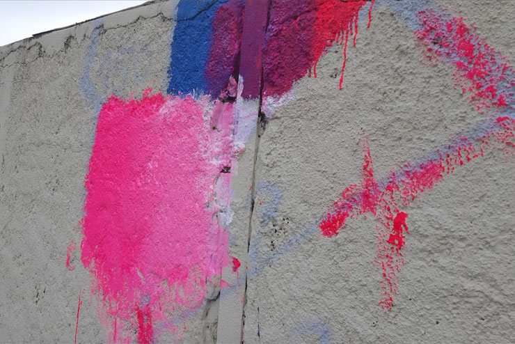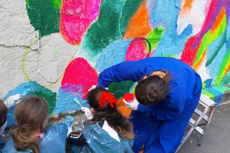 2. Place aux artistes ! Nous étions une dizaine à créer une composition colorée sur les tranches de murs qui étaient restés vides à cet effet.